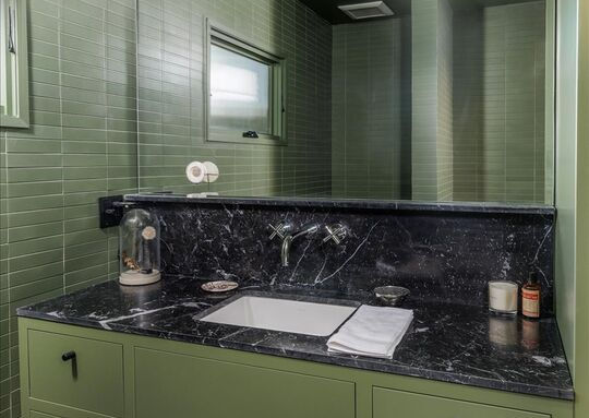 4934 La Roda Avenue is a fully reimagined mid-century home where no detail was overlooked. Every inch of this 3 bedroom, 2 bath residence has been meticulously renovated with the highest quality materials and a designer's eye for both beauty and function. The open living, dining, and kitchen spaces are grounded by solid white oak flooring and dramatic Douglas fir ceilings, creating a warm architectural backdrop. Natural light pours through, highlighting the craftsmanship and clean, modern lines throughout. At the heart of the home, the chef's kitchen is both refined and practical. Custom inset wood cabinetry, striking quartzite counters and backsplash, and a carefully selected suite of premium appliances include a Bosch dishwasher, Fisher & Paykel paneled refrigerator, and a professional grade Wolf gas range with pot filler and Zephyr hood. Every element was chosen for its quality and design impact. Both bathrooms are fully tiled and distinct in character. One is wrapped in bold green Zia tile with black marble floors. The other is finished in timeless Carrara marble. The primary suite includes a custom walk in closet with built ins, balancing luxury with everyday practicality. One of the additional bedrooms features a built in desk and a glass door that opens directly to the front patio, making it ideal for a home office or creative studio. Beyond the aesthetics, every system is brand new. HVAC, tankless water heater, laundry appliances, and even the custom wood garage door have all been newly installed. Outdoors, a Brazilian hardwood deck and fenced yard with mountain views extend the living space with the same attention to detail. Set on a 5,703 square foot lot in the heart of Eagle Rock, the home is just moments from the vibrant shops, cafes, and restaurants along Colorado Boulevard. This is not just a remodel. It is a complete reinvention, designed and built with uncompromising quality.